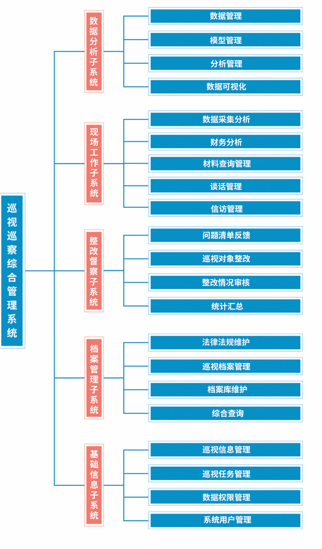 巡視巡察綜合信息管理系統(tǒng)以巡視巡察工作需求為牽引,充分利用大數(shù)據(jù),突出數(shù)據(jù)綜合分析、信息化手段運(yùn)用和業(yè)務(wù)流程規(guī)范“三個(gè)重點(diǎn)”,設(shè)計(jì)“一平臺(tái)四個(gè)子系統(tǒng)”體系架構(gòu),對(duì)上貫通中巡辦業(yè)務(wù)數(shù)據(jù),橫向銜接省級(jí)政務(wù)監(jiān)督資源,為巡視巡察提供信息服務(wù)和技術(shù)支撐。系統(tǒng)依托省紀(jì)委監(jiān)委大數(shù)據(jù)中心,建立巡視巡察數(shù)據(jù)標(biāo)準(zhǔn)庫(kù),與省紀(jì)委省監(jiān)委業(yè)務(wù)部門信息系統(tǒng)協(xié)同工作、共享數(shù)據(jù)。