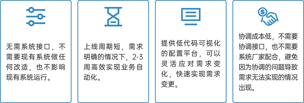 通過(guò)虛擬勞動(dòng)力,代替人完成耗時(shí)重復(fù)電腦工作,減輕法院事務(wù)性工作負(fù)擔(dān),讓人聚焦于高價(jià)值工作。對(duì)智慧法院的建設(shè),法務(wù)工作自動(dòng)化和智能化水平的提升都有重大的意義。
