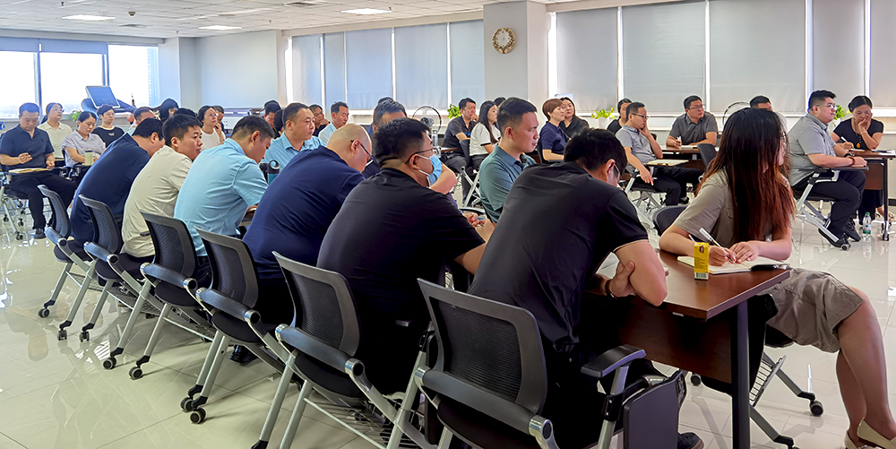 會議開場,主持人銷售中心副總經理陳沖首先對上半年銷售團隊業績及整體排名進行通報,展示了各行業條線任務完成情況。并指出2025年的銷售業績與往年同期比基本持平,行業項目雖然普遍面臨預算縮減、周期拉長等共性問題,但我們的銷售團隊頂住壓力,與研發、技術等部門互相配合,找到客戶痛點和瓶頸,充分發揮我們的技術特長,為客戶提供最優質的解決方案,得到了客戶高度認可,為銷售業績的達成奠定了基礎。