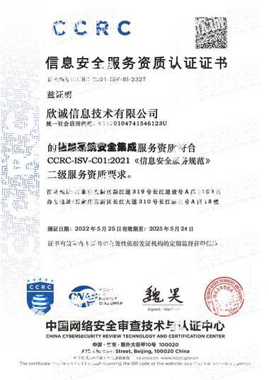 通過(guò)CCRC信息系統(tǒng)安全集成服務(wù)認(rèn)證